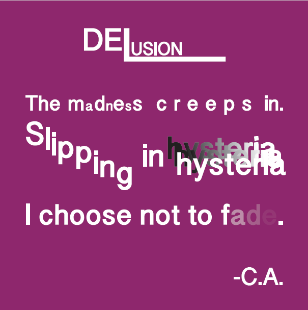 My first assignment for the class. I realize now my skills weren’t really that well. Essentially I had no clue about typography. But still utilizing a design perspective to see how the text can fit in with the image or in itself in general. More work to go of course.